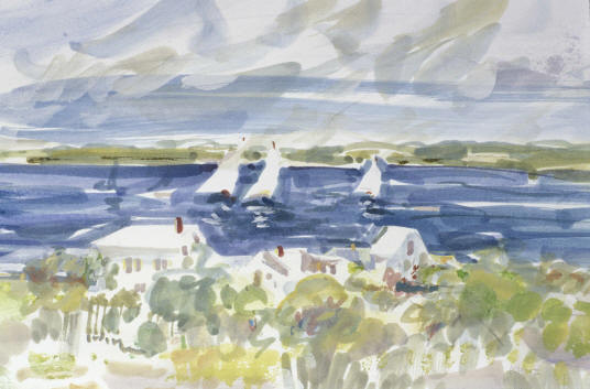 #0012 "Breezes", 18" x 24", Mixed Medium #0014 "Yachts on Bay II", #0017 "Cranberry Island", 18.5" x 16", Watercolor #0020 "George Town", 16" x 20", Watercolor, Original: Sold,
