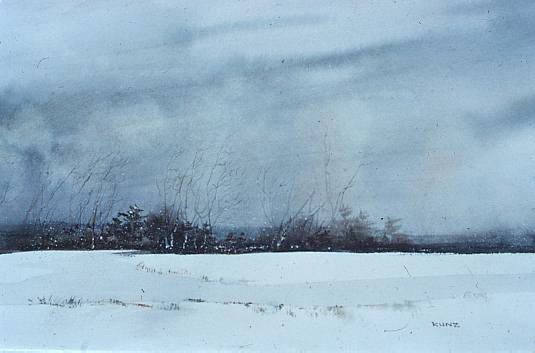 #0019 "Distance", Watercolor #0033 "Vermont Winter - Melting Snow", 20" x 28", Watercolor #0022 "Jersey Country", 18" x 24", Watercolor #0013 "Cobscook Bay" (Award), 18" x 24", Watercolor #0016 "Country Road", 14.25" x 20.5", Watercolor
